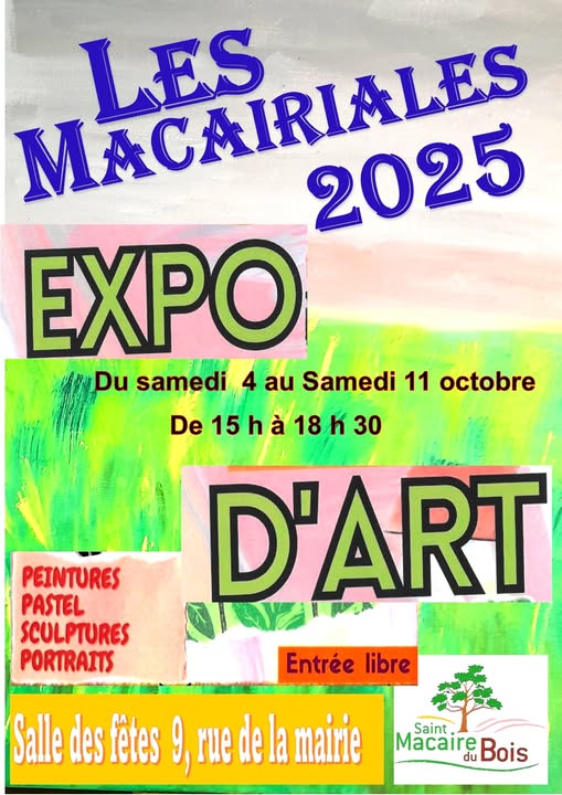 Le Cabaret Théâtre de St Macaire du Bois organise avec le concours de la Commune de St Macaire du bois la quatorzième édition de l' exposition artistique "Les Macairiales" en invtant :