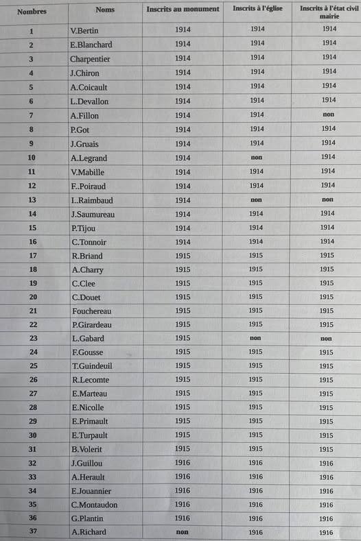Au Puy notre Dame, cela s'est vérifié car de 66 décès on en compte 3 identifié sur le monument aux morts