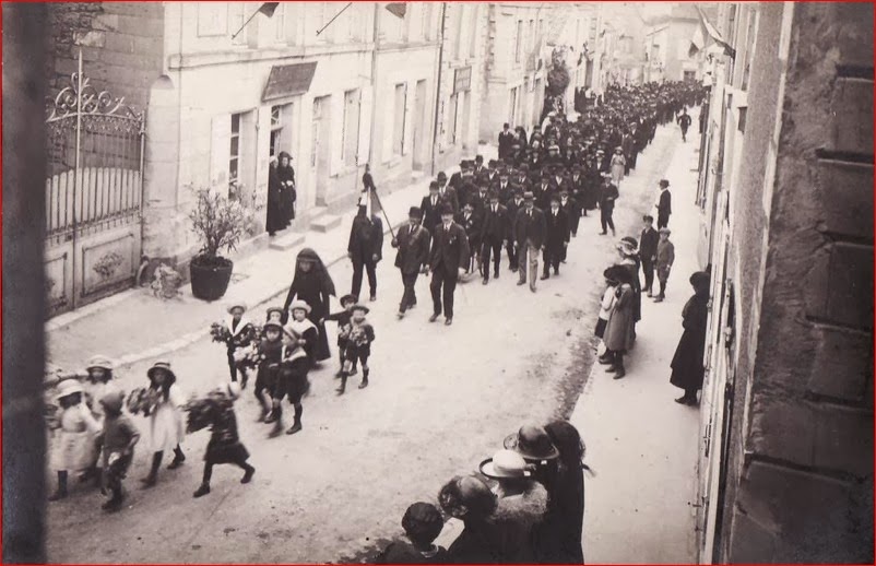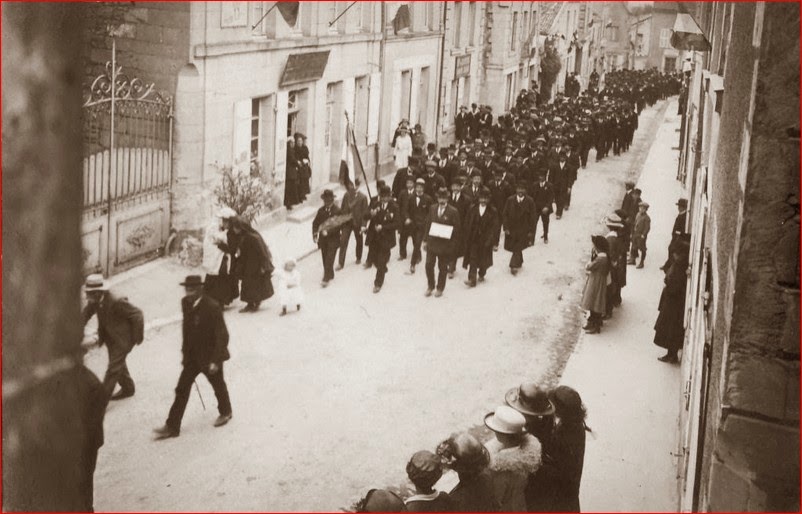 Un défilé fut organisé après le rassemblement groupant les pompiers du Puy Notre Dame, la musique, une délégation des brigades de gendarmerie, la famille de M.Raimbault, les anciens Combattants, les Prisonniers et déportés, les enfants des écoles, l'amicale des Réfractaires du Puy Notre Dame, ainsi que de nombreux amis de M.Raimbault.