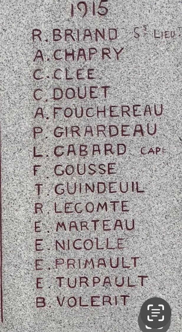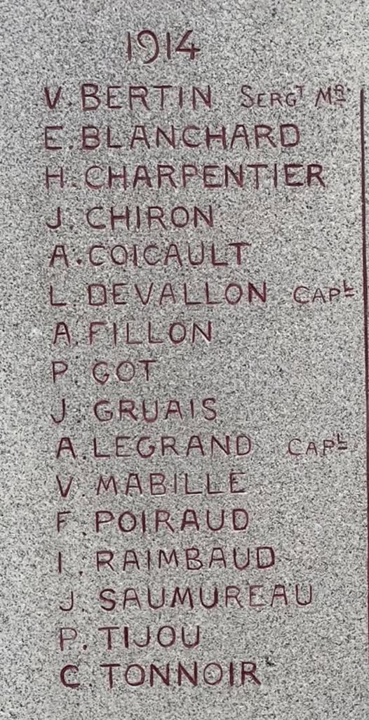 Né le 2 décembre 1885, à Roiffé, transcrit le 11 décembre 1914 à la mairie du Puy Notre Dame