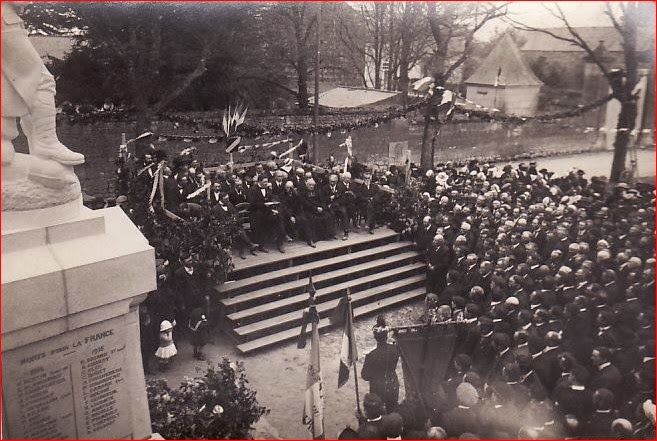 Sur la place de la Paleine, qui portera désormais le nom d'un grand Français, Jules Raimbault, la musique joua la sonnerie "Au Drapeau" et le monument qui jusqu'alors était voilé, fut découvert et l'on put lire :