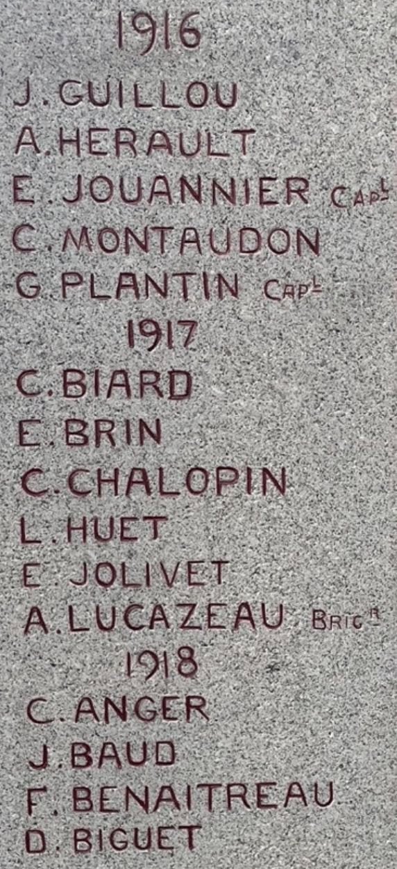 Né le 21 mars 1893, à Cizay la Madeleine, transcrit le 18 septembre 1916 à la mairie du Puy Notre Dame
