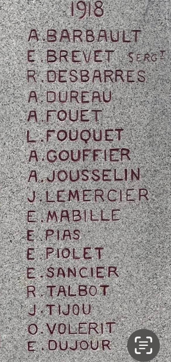 Adrien Barbault est également marqué en 1918 mais décédé en réalité en 1920
