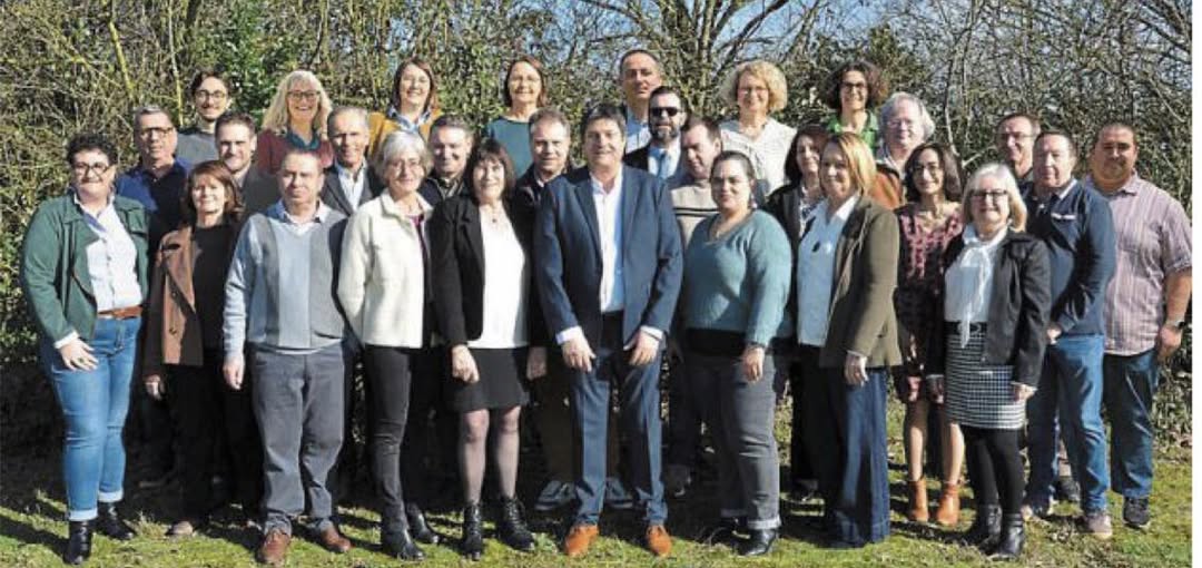 Le groupe devant la mairie avec les maires