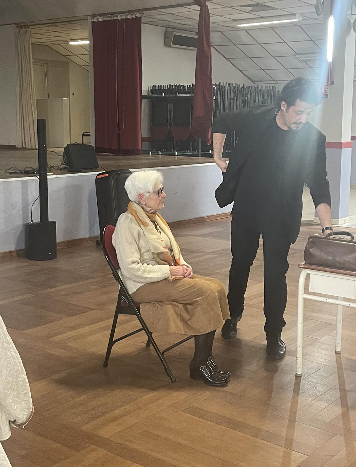 Le docteur Buisset filme, Mme Filaly assise et à ses côté le médecin de Drasov,