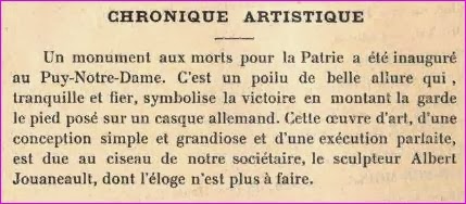 J’ai donc effectué une nouvelle recherche concernant ces trois combattants transcrits comme "Morts pour la France" au Puy Notre Dame et ne figurant pas sur le monument aux morts